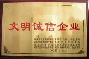 日前,我公司收到了由南京市市委宣傳部等八部門聯(lián)合授予的“文明誠信企業(yè)”獎(jiǎng)牌。