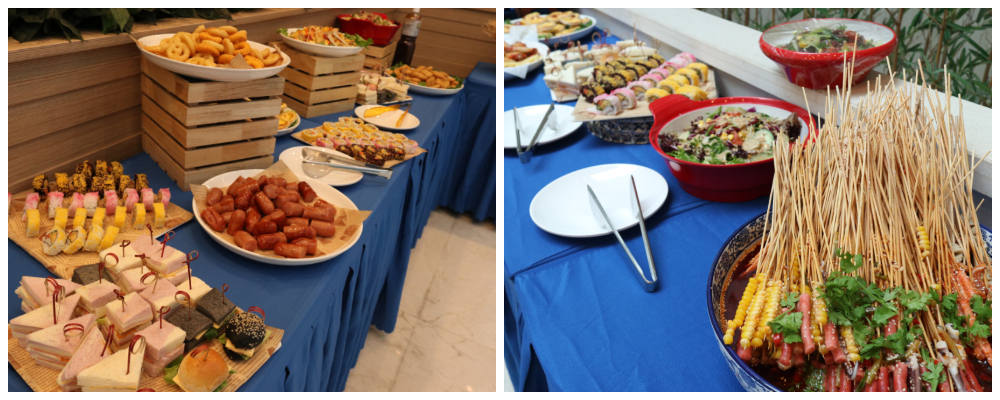 冷餐區(qū)內(nèi),同事們有序取餐、笑語歡談,在一片溫馨中共享圣和成長(zhǎng)的喜悅。