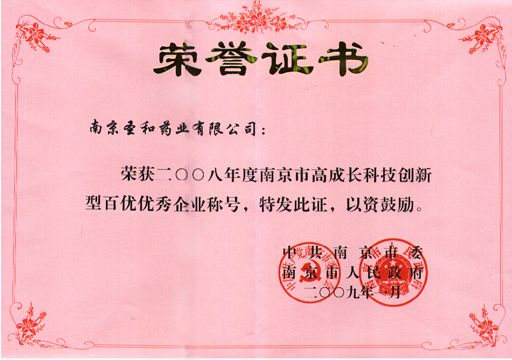 2009年2月1日上午,南京市委、市政府在南京經(jīng)濟技術開發(fā)區(qū)召開“全市工業(yè)保增長促轉型動員大會”,市委書記朱善璐、市長蔣宏坤出席大會,并作重要講話。會上還表彰了2008年度工業(yè)經(jīng)濟先進單位,我公司被授予“二OO八年度南京市高成長科技創(chuàng)新型百優(yōu)優(yōu)秀企業(yè)” 榮譽稱號。