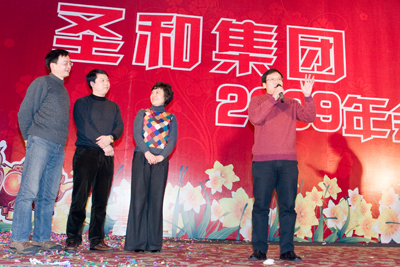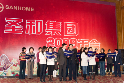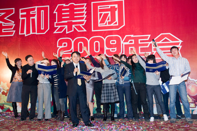 爆竹聲頻鬧庭軒,又逢春風(fēng)送舊年。轉(zhuǎn)眼,又到了揮手惜別舊年,滿懷喜悅迎接新年的時(shí)候了。元月16日晚,圣和集團(tuán)在寧員工、駐外辦事處經(jīng)理及各地代理商380余人歡聚一堂,在維景國(guó)際大酒店隆重舉行2009年迎春聯(lián)歡晚會(huì)。整個(gè)大廳座無(wú)虛席,華燈齊放、彩帶高懸,深紅的幕布為舞臺(tái)披上了節(jié)日的盛裝,大家歡聚一堂,共迎新春佳節(jié),晚會(huì)在歡快的樂(lè)曲聲中拉開(kāi)帷幕。