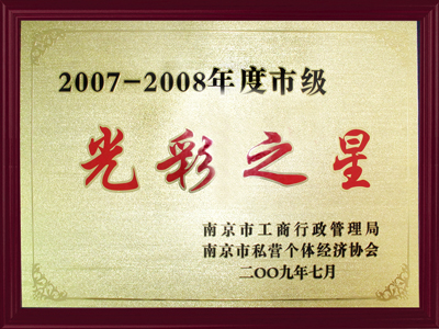 2009年8月3日下午,南京市私營(yíng)個(gè)體協(xié)會(huì)在華山飯店召開常務(wù)理事會(huì)暨表彰大會(huì),市私營(yíng)個(gè)體協(xié)會(huì)主席、常務(wù)理事及會(huì)員代表200余人參加了會(huì)議,南京市工商行政管理局單兆彭副局長(zhǎng),共青團(tuán)南京市委副書記王偉出席了會(huì)議。會(huì)上,我公司被授予“青年文明號(hào)”及“光彩之星”等獎(jiǎng)牌。