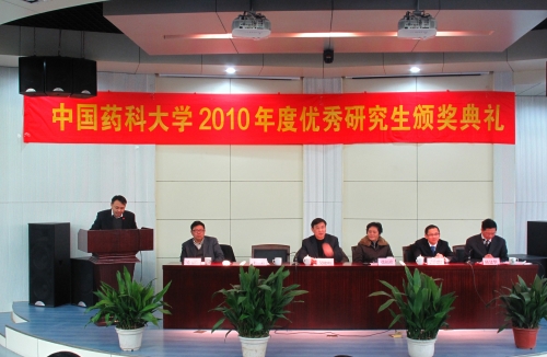 2011年1月7日下午,中國(guó)藥科大學(xué)2010年度優(yōu)秀研究生頒獎(jiǎng)典禮在中國(guó)藥科大學(xué)多功能廳舉行,中國(guó)藥科大學(xué)吳曉明校長(zhǎng)、黨委副書(shū)記張福珍同志等出席了頒獎(jiǎng)典禮。王勇董事長(zhǎng)作為特邀嘉賓參加了頒獎(jiǎng)儀式,并向獲得“圣和創(chuàng)新獎(jiǎng)”的優(yōu)秀研究生進(jìn)行了頒獎(jiǎng)。