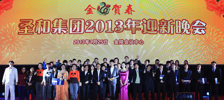金龍笑歸隱,銀蛇喜相迎。1月25日晚,圣和集團(tuán)2013年迎新晚會在金陵國際會議中心中華廳隆重舉行,在寧員工及家屬、駐外員工代表1000余人歡聚一堂。晚會現(xiàn)場喜氣融融,大屏幕上不時滾動播放公司宣傳片、大事記、獲獎員工照片和攝影展獲獎作品。