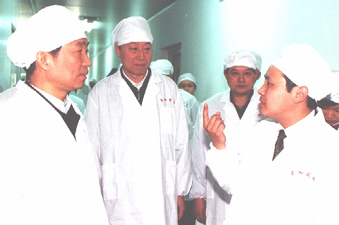 二○○三年“五一”節(jié)當(dāng)天,省委書記李源潮在南京市委書記羅志軍的陪同下,上午十點(diǎn)三十分來(lái)到我公司新港生產(chǎn)基地了解生產(chǎn)抗”非典“藥物生產(chǎn)情況,看望并慰問奮戰(zhàn)在一線的員工,代表省委、省政府對(duì)本公司員工在勞動(dòng)者的節(jié)日、非常時(shí)期堅(jiān)守崗位,加班加點(diǎn),保證防治非典藥物的生產(chǎn)供應(yīng)表示感謝,并向全省工人階級(jí)和所有勞動(dòng)者致以節(jié)日的問候。