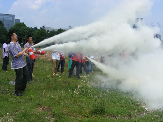 為了達(dá)到本次培訓(xùn)的效果,行政部專門邀請了南京安居防火教育培訓(xùn)中心時(shí)真銀教官來為大家授課。時(shí)教官生動形象講述了火災(zāi)發(fā)生時(shí)所要掌握的一些常識和各種逃生技巧,并向大家詳細(xì)介紹了各種防火器材的準(zhǔn)備及使用。隨后,在廠區(qū)的一塊空曠的草地上,采用火盆實(shí)地演習(xí)滅火器的使用方法,演練者熱情高漲,積極參與了演練的全過程。
