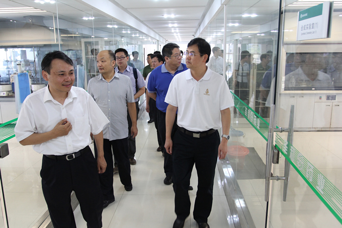 本網訊 8月2日,國家食品藥品監(jiān)督管理總局藥品化妝品注冊管理司王立豐司長、藥品審評中心馮毅主任助理,中國醫(yī)藥工業(yè)科研開發(fā)促進會宋瑞霖會長、陳昌雄常務副秘書長、國際部黃毅副主任等一行9人在省食品藥品監(jiān)督管理局胡曉抒局長陪同下,來我司考察。