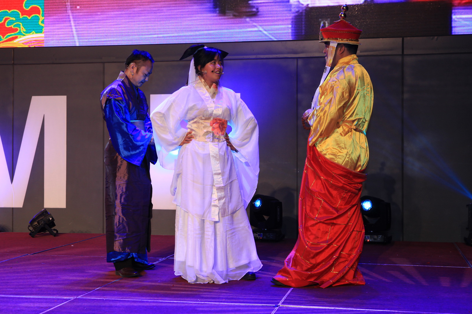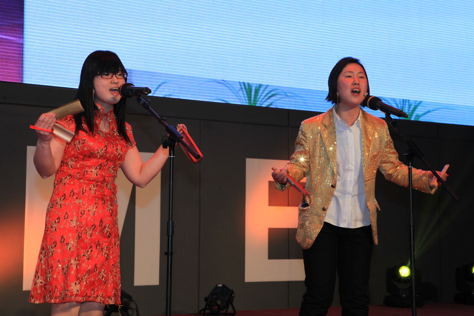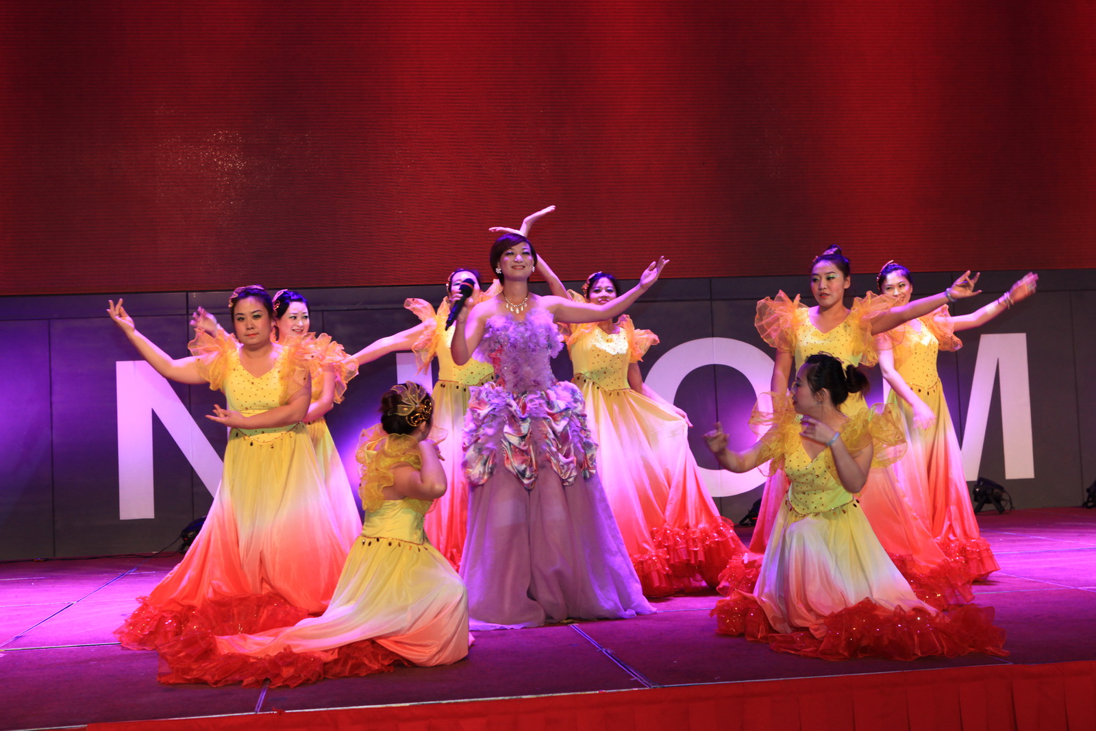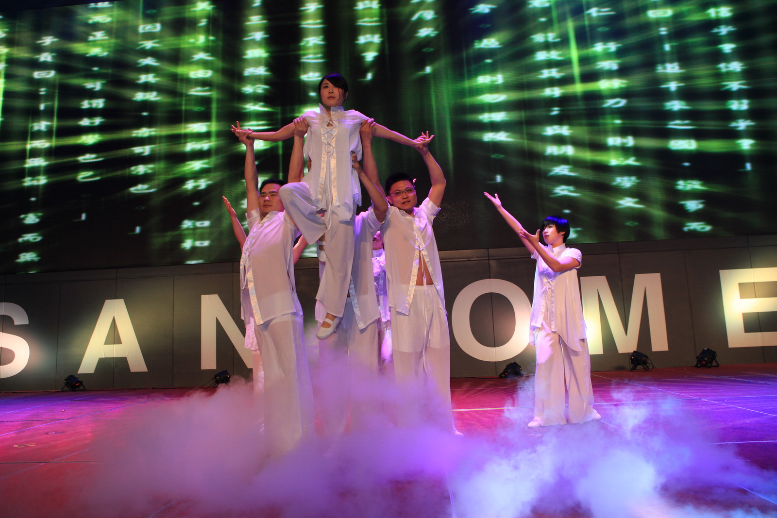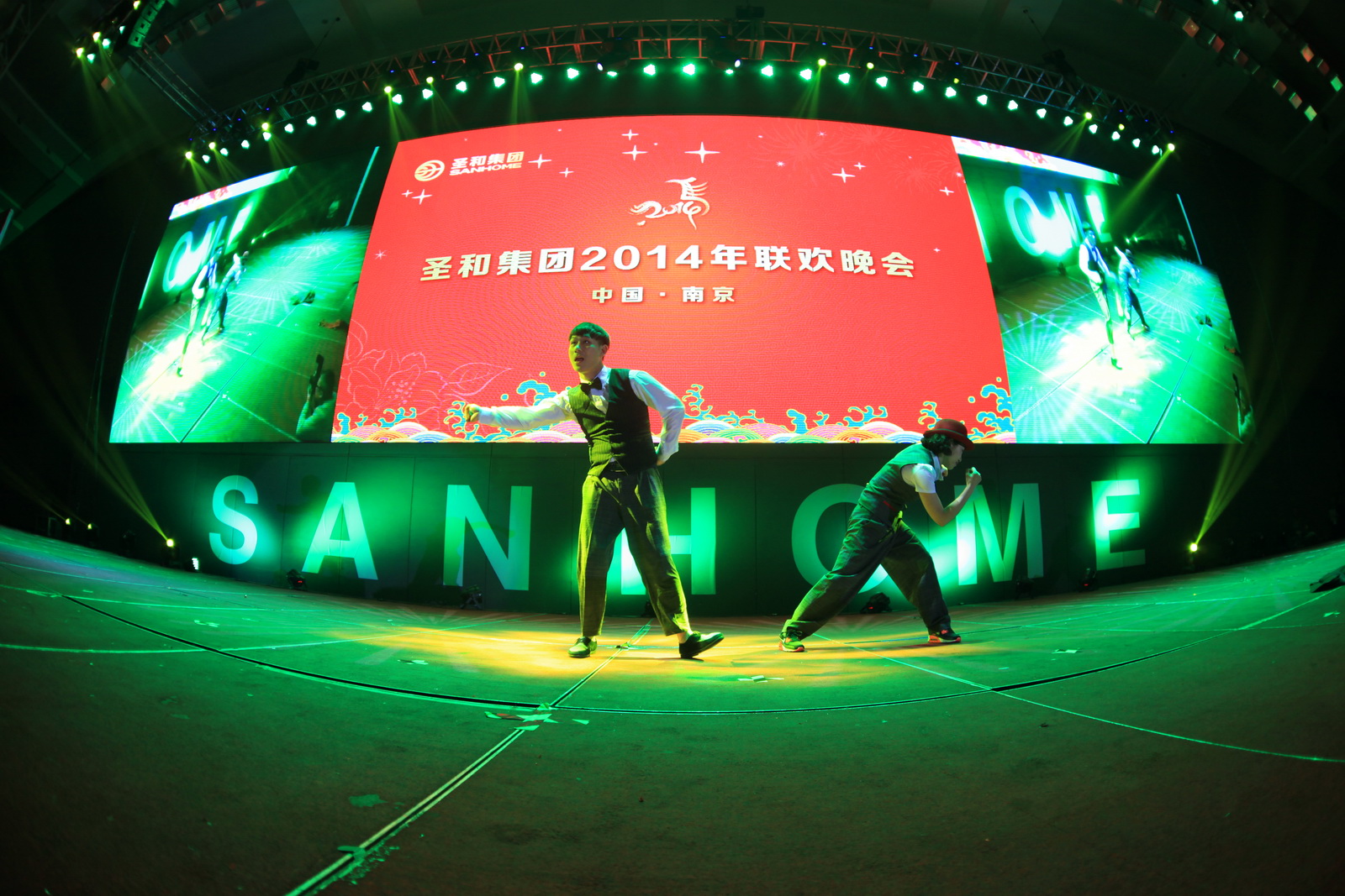 舞蹈《好運來》拉開了演出的序幕,視頻短片《光耀未來》寓意著,“榮光耀,千里之行始今朝,展未來,萬里揚帆再啟航”。由吉遼大區(qū)孫瑤等帶來的歌伴舞《相信》和來自南京德云社的兩位著名相聲演員,給大家?guī)砹瞬灰粯拥穆犛X享受。江蘇大區(qū)的童沅等帶來的舞蹈串燒,展示了圣和員工的活力和朝氣。研發(fā)中心的視頻互動《爸爸去哪兒了》,喚起了大家無限的親情感受。江蘇省歌舞團(tuán)演員奉上的民歌《越來越好》和《在希望的田野上》,增添了紅紅火火的氣氛。黑龍江大區(qū)的張巍巍、郭強兩人合作的小品《吃面》,給大家?guī)砹瞬簧贅纷。制劑分廠三車間任詠秋的歌伴舞《望鄉(xiāng)》,唱出了無盡的鄉(xiāng)情。奇妙的《水晶芭蕾》,給大家?guī)砹瞬灰粯拥挠^賞視覺。云貴大區(qū)的小品《新白蛇傳》中插播的廣告詞,讓圣和人記憶猶新。研發(fā)中心何承華帶來了歌曲《女人花》,盡顯柔情感染了全場。供應(yīng)鏈徐明秀、滿金萍帶來快板表演《供應(yīng)鏈之聲》,道出了供應(yīng)鏈的心聲。京劇樣板戲串燒、制劑分廠一車間崔紅俊的獨唱《紛飛》,讓大家一飽耳福。上海大區(qū)譚秋艷等的現(xiàn)代舞《思韻》,毫不遜色專業(yè)型的舞蹈演員,輕盈的舞姿散發(fā)著時代的氣息。置業(yè)公司的小合唱《真心英雄》,掀起了本場晚會的高潮,王勇董事長也被邀登臺同唱。北京大區(qū)的舞蹈《好日子》落下了整場晚會的帷幕,寓意著新的一年我們迎來2014,讓我們盛情邀約好日子的到來。