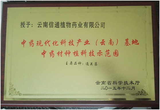 本網(wǎng)訊 3月16日,經(jīng)過圣和人歷經(jīng)數(shù)載的潛心研究和堅(jiān)持不懈的努力,在無人涉及的通關(guān)藤研究和種植領(lǐng)域中不斷探索,終于取得了優(yōu)異的成績,其成果得到了云南省科技廳的認(rèn)可,被云南省科學(xué)技術(shù)廳授予為“中藥現(xiàn)代化科技產(chǎn)業(yè)(云南)基地中藥材種植科技示范園”,近期在云南信通植物藥業(yè)有限公司正式掛牌。